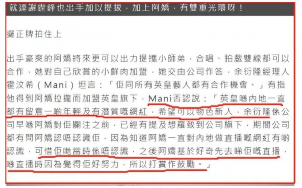 网传余衍隆不是省油的灯,他之所以能够进入阿娇的老东家英皇公司,应该是有阿娇牵线搭桥,助力他实现演艺梦想。
