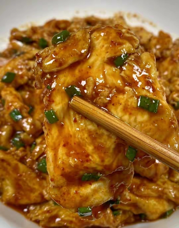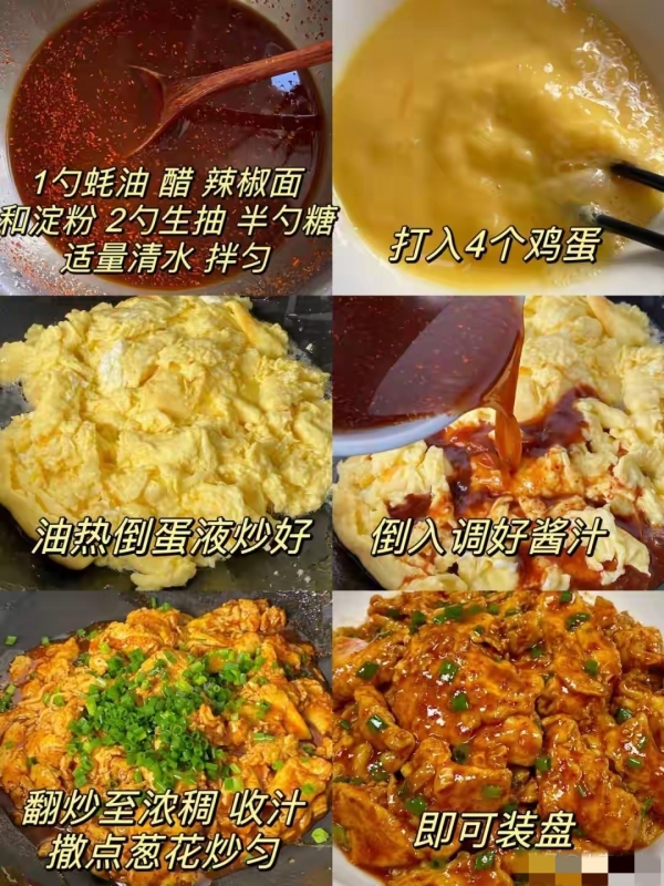 6. 把鸡蛋倒回去,轻轻翻炒让每块都裹上酱汁。