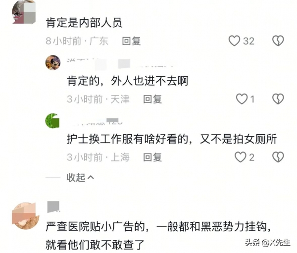 网友怀疑偷拍者肯定是医院内部人,因为医院换衣室一般人根本进不去