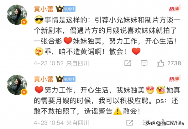 林允发文后,黄小蕾紧随其后,在评论区解释了林允与月嫂合影的前因后果。