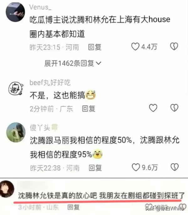 关于沈腾林允的事,最早是狗仔在直播中说的,还有聊天记录,之后就被网友对号入座,多次讨论发酵,登上热搜!