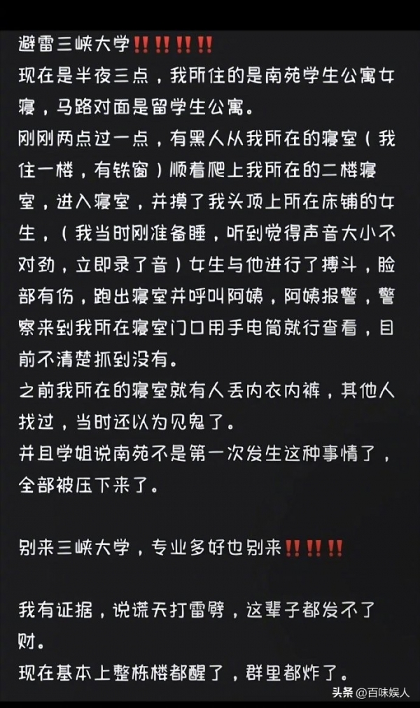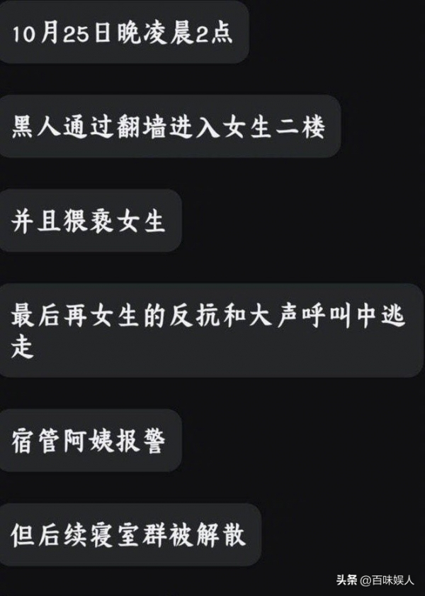 另外,女生宿舍有过多次发生留学生偷窃内衣、骚扰女生事件,但都被校方压下来了,这一次爬墙猥亵女生,情节实属太过严重,所以逼的大家站出来发声。
