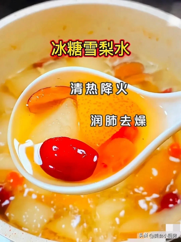 秋燥一来,嗓子容易干痒,冰糖雪梨水就是"及时雨":雪梨去皮切块,加几颗冰糖煮10分钟,喝起来清甜润喉,滋润又解渴,全家都能喝,比喝饮料强百倍。