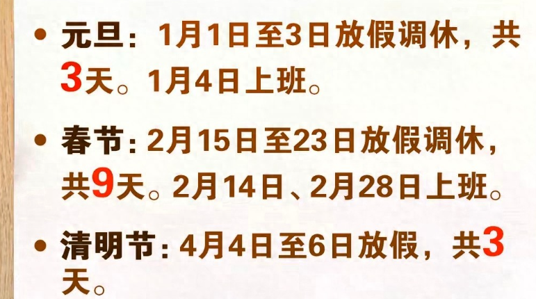 这次的放假安排是真的懂大家的需求,既守住了春节和家人团聚的传统,又满足了咱们想出门放松、看风景的心愿,让假期不再是"赶场式的忙碌"。9天春节假能好好陪家人过个踏实年,5天五一假能解锁远方的风景,这样的假期才够有意义