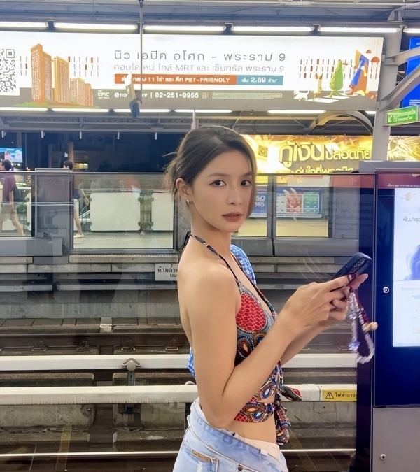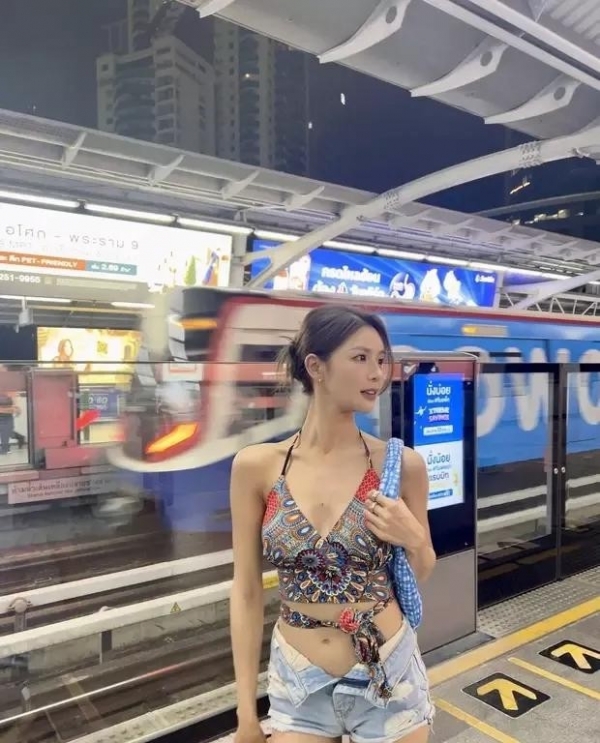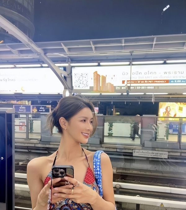 她没躲,配文直接回应衣服来处和争议:上衣曼谷街头买的,裤子不扣,别管我。