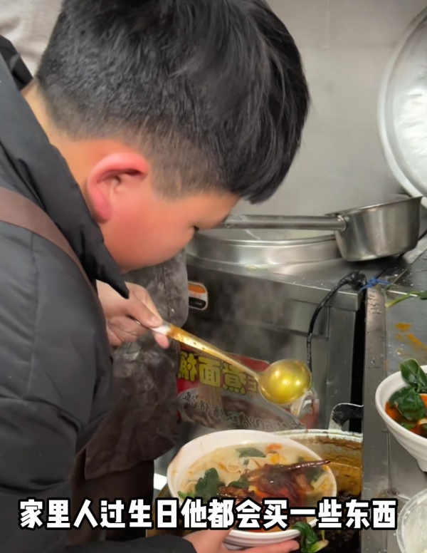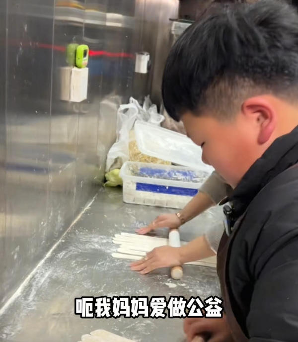 妈妈能教出这样的好孩子,也是有原因的,因为那就给男孩树立了很好的榜样,男孩的妈妈很喜欢做公益。店里面,板面会免费提供给有困难的,孤寡老人和环卫工人等。