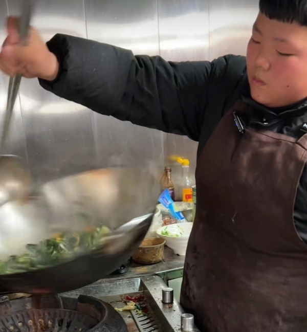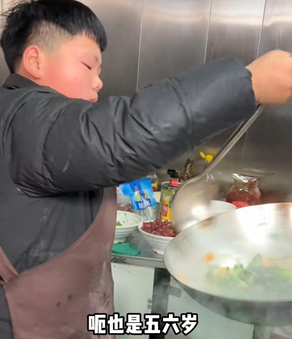 值得一提的是,男孩在上学时也会帮忙,平时放学后写完作业,就会去店里面帮忙,炒菜擦桌子点菜什么的都会了,在7岁时就会翻锅了。