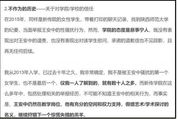 据悉,这位女生举报的对象是陕西师范大学的副教授王安中,1978年出生,今年47岁。他不仅是陕师大的硕士生导师,还是文艺与传媒领域的博士生导师,曾经担任过地方电视台频道总策划和广告部副主任,履历相当丰富。