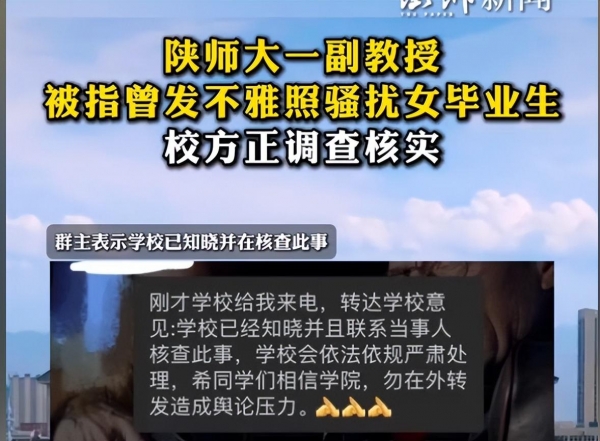 近日,陕师大又曝光了一位副教授在女学生毕业后,对其进行性骚扰,甚至还发自己的生Z器照片让对方欣赏,真的是尺度太大,令人不忍直视。