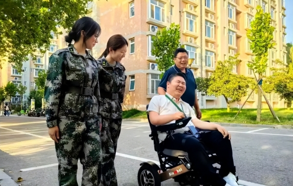 10月1日,山东管理学院校园里,大一新生吴志腾坐在轮椅上,父母相伴左右,一家四口汇入返乡的人流。这是他们家的第八次搬家,每一次都围绕着吴志腾的求学路,而这次,是喜悦的奔赴。
