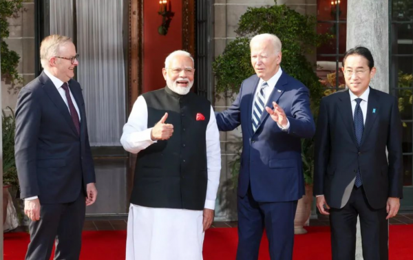 据参考消息9月23日报道,美日印澳"四方安全对话"在美国总统拜登就读过的威尔明顿市的一所高中举行,与会人员未卜的前途令会议蒙上了一层阴影。除开今年赢得大选的莫迪外,岸田文雄本月即将卸任,拜登明年1月卸任,阿尔巴尼斯明年大选胜率不高,这也引发了外界对于"四方安全对话"明年是否能继续召开的猜测。