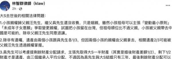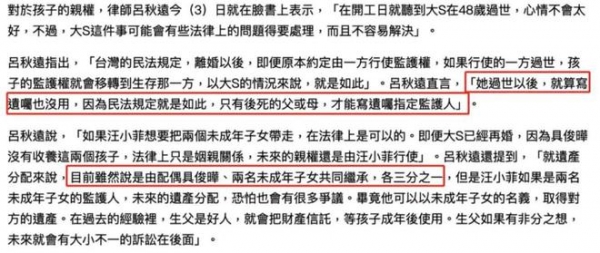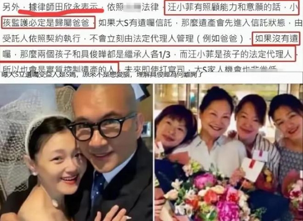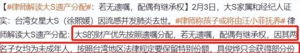 有台湾律师对大S的财产分配做出回应: