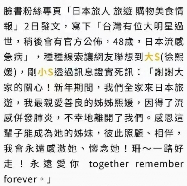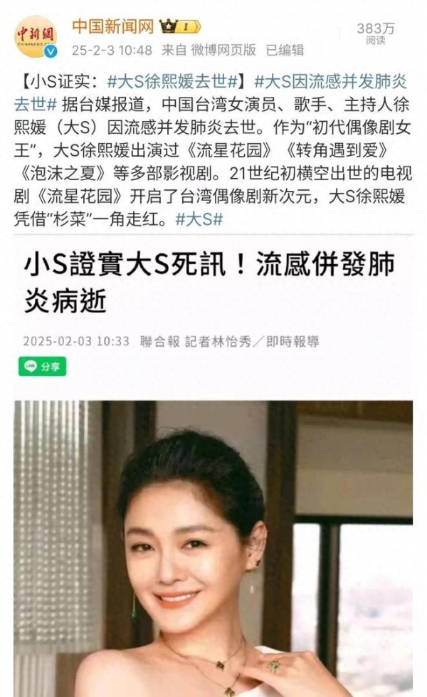 万万没想到,春节还没过完大S就以这样的方式离开。