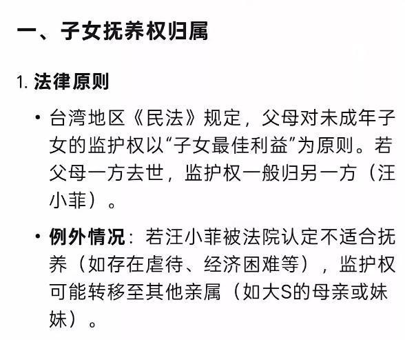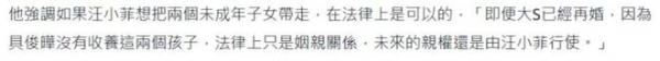 而如今,大S去世,两个孩子丧母,监护权旁落。