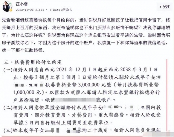 当初法院根据孩子意愿和双方经济情况做出判决,要求汪小菲每月支付一定数额的抚养费。