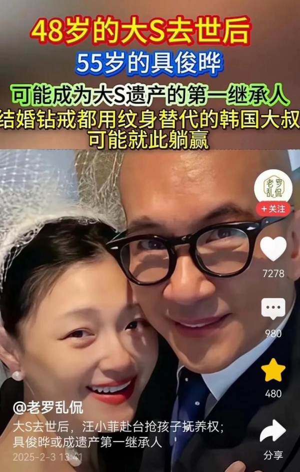 但谁能想到?大S去世,最大的受益者却是身为韩国人的他!