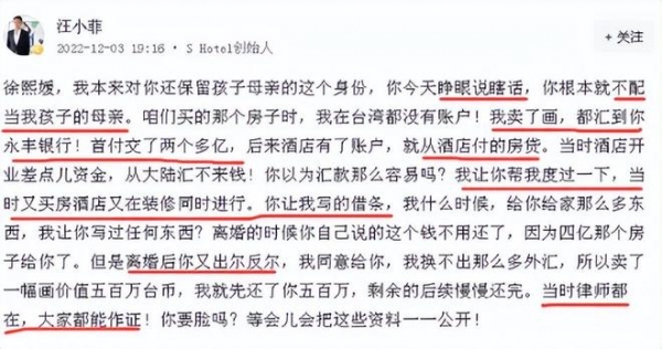 大S不惜爆料汪小菲涉及婚内出轨、家暴等内情,只为拿到钱。