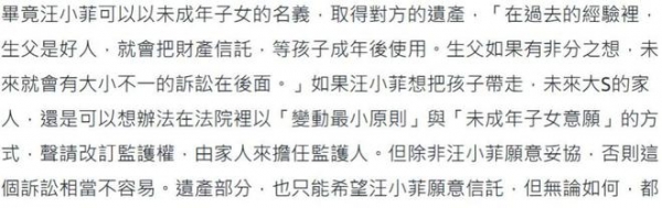 但最关键的是,大 S 的两个孩子均为未成年人,他们虽然享有继承权,但由于年龄尚小。
