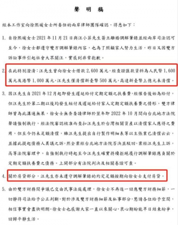 此外,大 S 与汪小菲的离婚官司未了,他们在婚内共同购买的房产,离婚时尚未明确分割。
