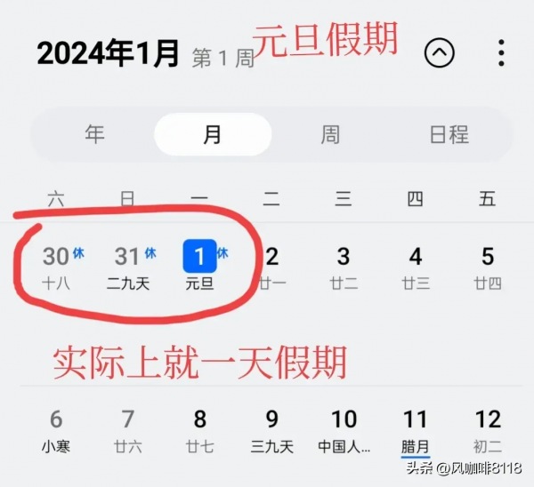 元旦:名义上放了三天,可实际上就 1 月 1 日一天,另外两天本来就是周末,这就像是"买一送二"的促销活动,看似多给了,其实都是自己的。