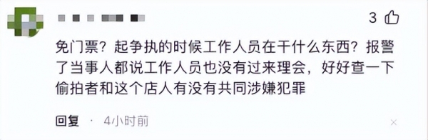 免门票?起争执的时候工作人员在干什么东西?报警了当事人都说工作人员也没有过来理会,好好查一下偷拍者和这个店人有没有共同涉嫌犯罪