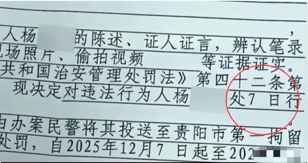 "派出所调查时我看到,她手机里有好多不同女士的裸体和视频,其中一段29秒的视频里,有三个女士都是全裸状态,而且这段视频已经被她转发给微信好友了。"熊女士的表述,印证了这是一起有预谋、多次实施的偷拍行为。12月9日,记者从相关部门确认,杨某某因违反《治安管理处罚法》,已被依法处以7日行政拘留的处罚。
