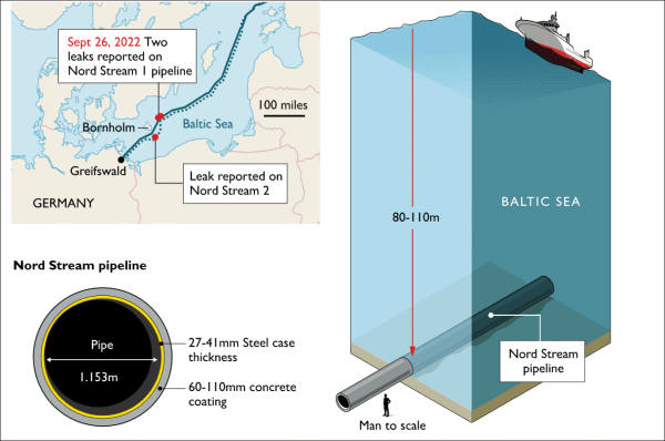 北溪管道被炸彻底终结了俄欧能源一体化的短期可能性,图为英国《泰晤士报》制作的北溪事件示意图