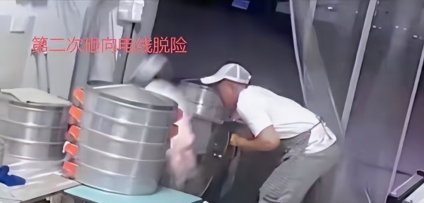 老板赵先生可能只是想挪一下蒸炉旁的电线,下一秒,他就被一股看不见的力量给"钉"在了原地。