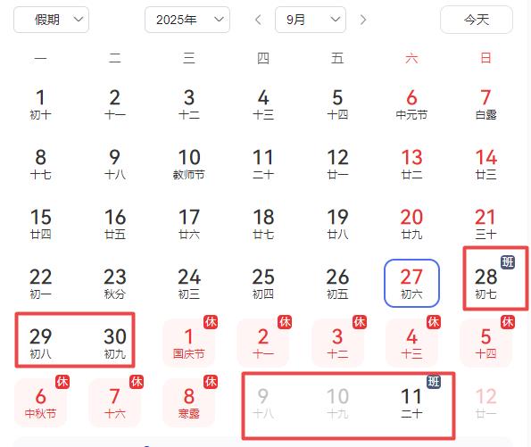 9月28日(星期日)、10月11日(星期六)需要上班。9月28日是今年国庆节、中秋节合并放假前的一个周日,而10月11日是假期结束后的周六,对于双休的人来说,无需连上七天以上的班。但对于大小休或者单休的人来说,就不一定了,具体还要看排班安排。