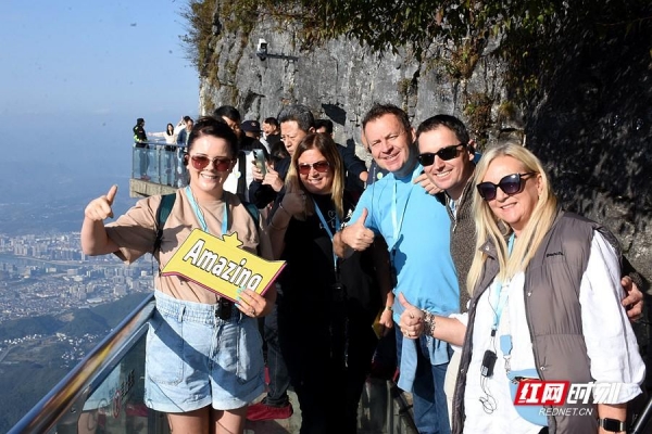 "Amazing!"11月5日-6日,英国旅行商考察团湖南之旅走进湘潭、长沙、张家界等地,14 家旅行商打卡国家5A级景区韶山、橘子洲、天门山,深度感受湖南红色文化、城市风光、绝版山水交织而出的文旅活力。