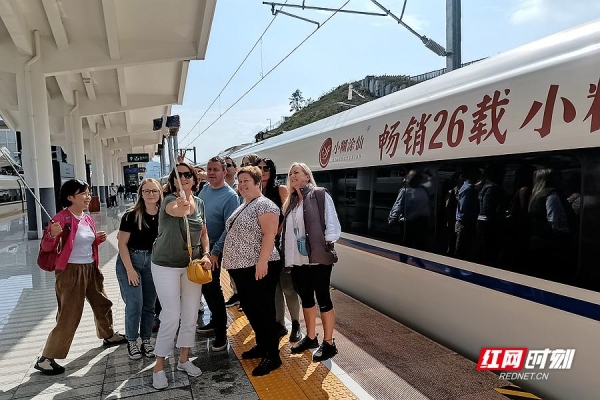 "中国高铁准时、舒服、快速,让人难以置信。"11月6日一早,考察团一行搭乘高铁从长沙出发,奔赴"国际张"。高铁成为了一张凝聚文旅品牌热度的名片,让许多第一次乘坐中国高铁的考察团成员无比兴奋。