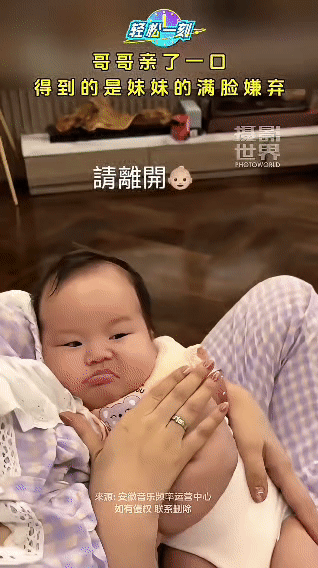 哥哥满心欢喜地凑过去亲妹妹,本以为能收获妹妹的甜蜜回应,结果妹妹满脸写着"嫌弃",那小表情仿佛在说"请你赶紧离开",最后还很有"脾气"地扭过身子,把哥哥整得那叫一个尴尬又好笑,这兄妹俩的互动也太逗啦!