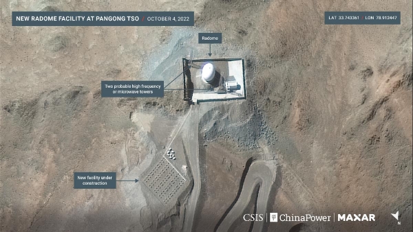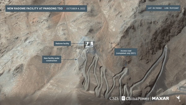 最近,美国智库"战略与国际研究中心"(CSIS)发布了一系列不同时间拍摄的卫星照片评估报告。美国卫星在过顶中印边境地区时,发现中国方面在中印边境沿线和班公湖附近的基础设施建设进展神速。中印在第十七轮军长级谈判之后,双方军队开始从果格拉温泉的对峙区域脱离接触。但是解放军并未回撤很远,CSIS发布的卫星照片显示,解放军在班公湖附近,距离果格拉温泉以南仅50公里的地方,建设了三处重要的军事设施。