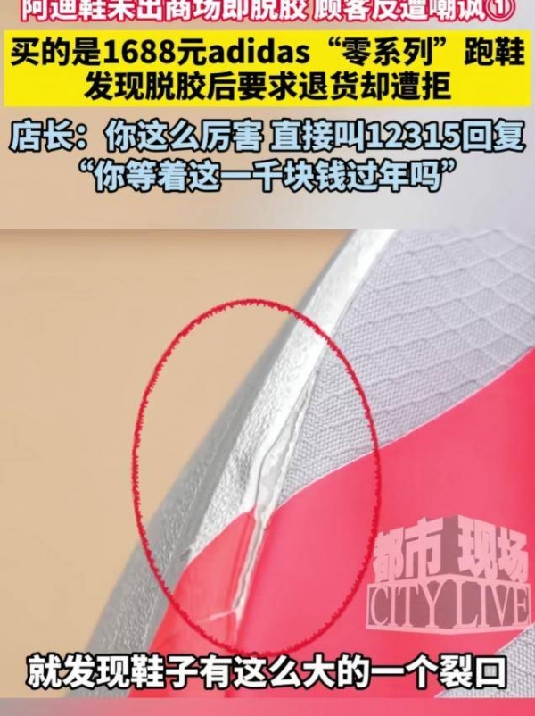 就在不久前,江西南昌发生了一起消费纠纷。一位消费者在阿迪达斯门店买的鞋子,刚穿上就开胶了。当他按照法律规定要求退货时,竟被店长嘲讽:"你等着这一千块钱过年吗?"