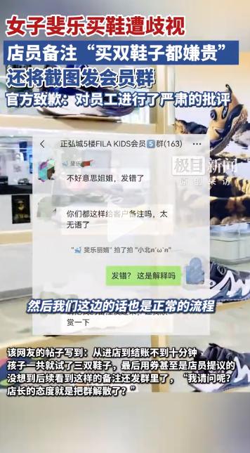 "我们为顾客在该店的不快体验表示最诚挚的歉意。我们已第一时间与门店负责人了解情况,并对存在失当行为的员工进行了严肃批评。类似情况绝不被允许。"