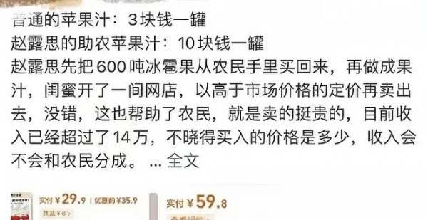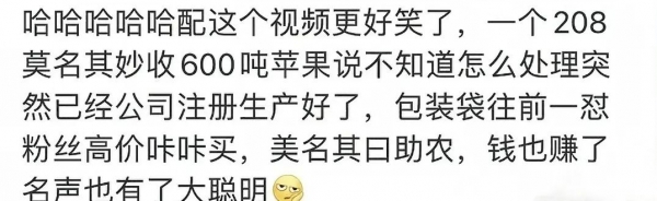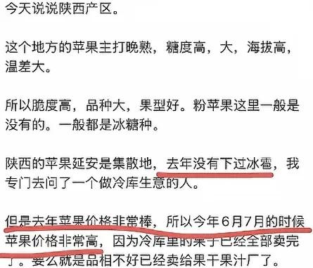 其次就是她说的冰雹果这事,被当地人质疑,因为今年并没有下冰雹,苹果也并没有滞销,反而买的很好。