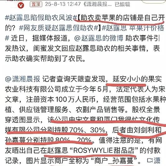 随后赵露思就因为假助农事件登上了热搜,