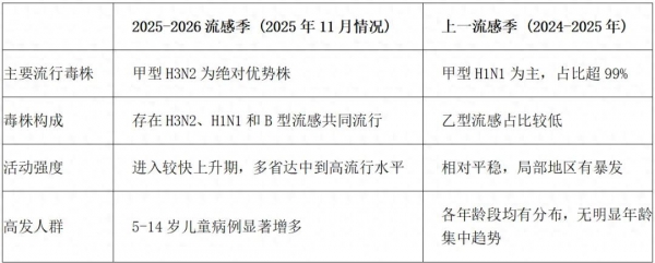 今年流感的核心变化是流行毒株变了!上一季主导的甲型H1N1退居次位,甲型H3N2成为本季主流毒株。由于H3N2近两年没有大规模流行,人群普遍缺乏针对性免疫屏障,感染风险明显上升。