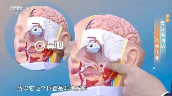 鼻咽位于鼻腔后方,颅脑正中央,大小、形状与小火柴盒相似,属于呼吸道的一部分。