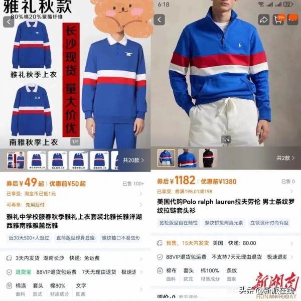 此前,有网友在社交平台晒出照片,称拉夫劳伦门店一款长袖POLO衫与长沙市雅礼中学秋季校服在配色和设计上极其相似,引发网友热议:"不是拉夫劳伦买不起,而是雅礼校服更有性价比!"