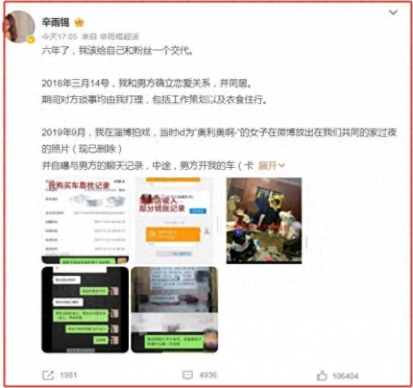 娱乐圈又出大瓜了!德云社当红相声演员秦霄贤被前女友辛雨锡公开指控在恋爱期间多次出轨。辛雨锡在社交平台上发长文,列举了秦霄贤的种种"劣迹",还放出了不少所谓的证据。这下可把吃瓜群众炸开了锅!