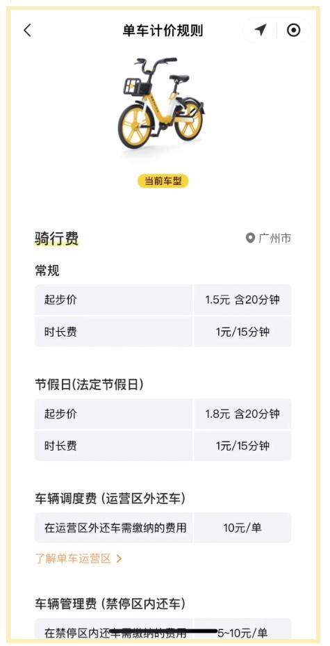 价格下调。工作日1.5元的费用,使用时间从15分钟延长到20分钟,节假日起步价为1.8元/20分钟。
