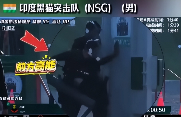 从视频中对比不难看出,中国女警动作连贯、枪法精准,没有一点拖泥带水。而印度特警只在开局翻越障碍并从车中取出步枪稍微快了两秒,而从后面的狙击项目开始,印度特警就一直比中国女队慢了,在破门进入下一个场地的环节,中国女队几乎毫不费力直接破门,而印度这边却足足锤了4下才把门打开,按理说这种力量活不应该男性更有优势吗?原来是突击手把破门槌拿反了,而两个队友在后面居然也没看出来问题,锤了好几下之后才意识到问题,终于调转方向把门打开。