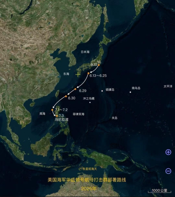 【华盛顿号这几天的航行轨迹,于7月1日进入南海】