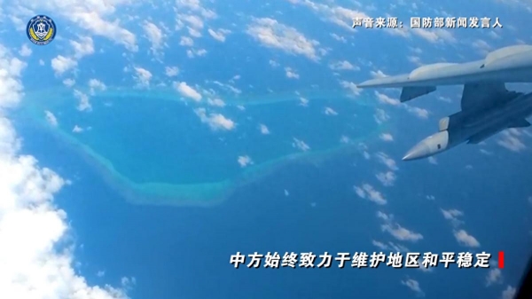 空中出现的歼-16战斗机应该是从西沙群岛的某处机场起飞的,轰-6K轰炸机则有可能是从西沙或者海南岛出发的。