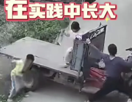 11月25日,广东,妈妈开着三轮车带两孩子玩,不料下一秒,三轮车直接翻到沟里,幸亏两孩子反应快,从车上跳了下来,化险为夷。