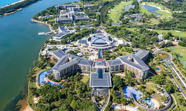 2024年3月18日,历时近两年,由中国铁建旗下中铁建设集团参与改造施工的博鳌近零碳示范区全面完成,正式进入近零碳运行阶段。图为博鳌近零碳示范区航拍。中国铁建