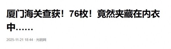 据《光明网》报道,事件发生在厦门口岸的进境旅检通道。