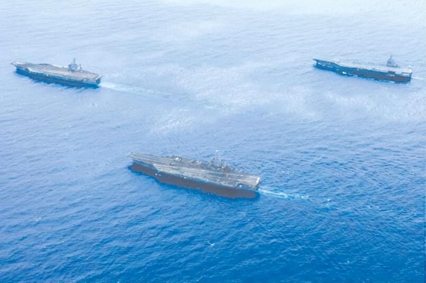 每艘航母可能有不同的任务和目的,有的可能只是途经该地区,有的可能是在进行例行的轮换。