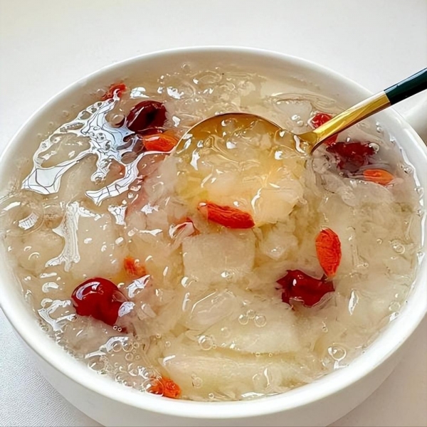 做法:银耳提前泡发,和切块的雪梨一同煮1小时,可加少许枸杞调味。